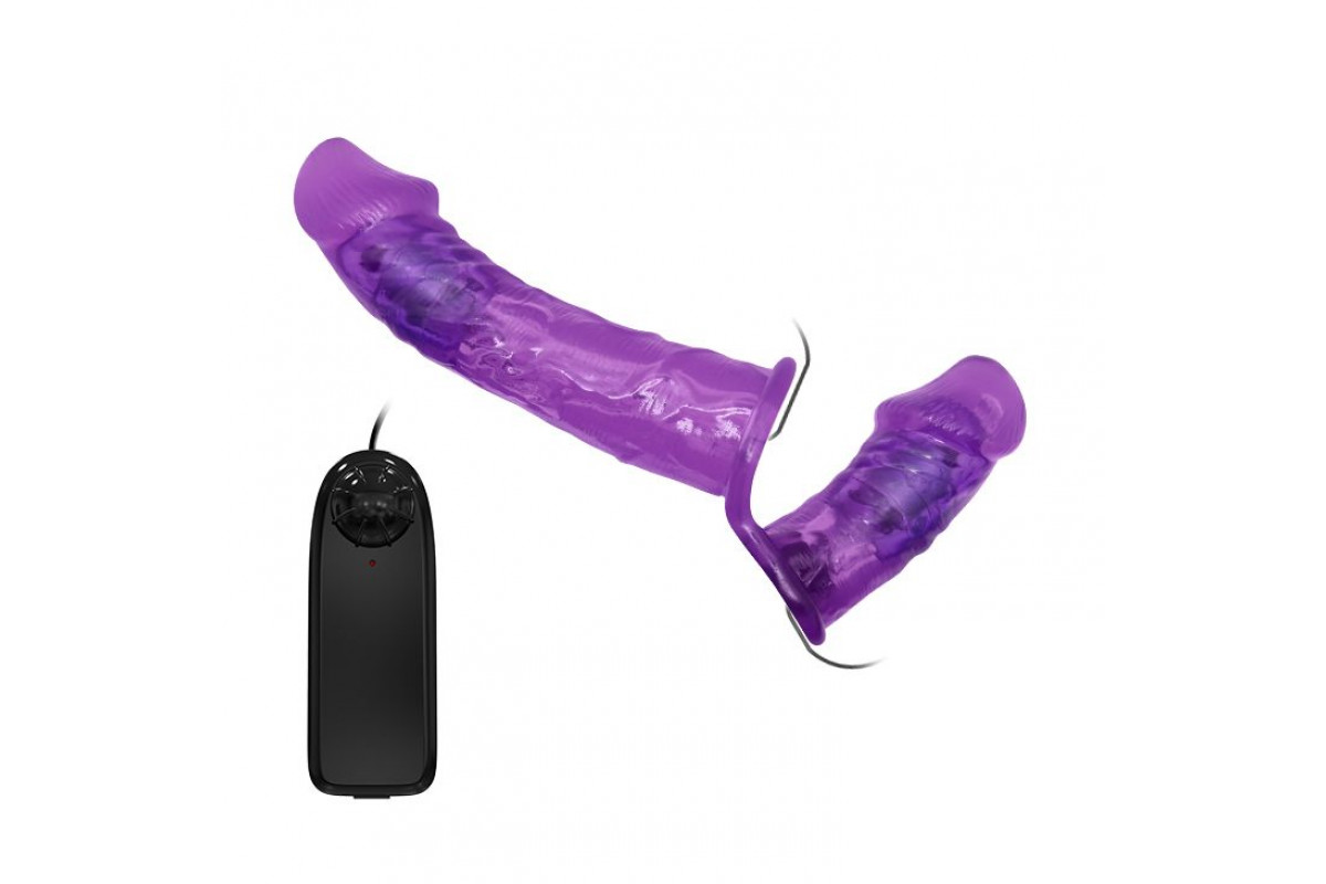 Женский фиолетовый страпон с вагинальной вибропробкой Ultra - 17,5 см.