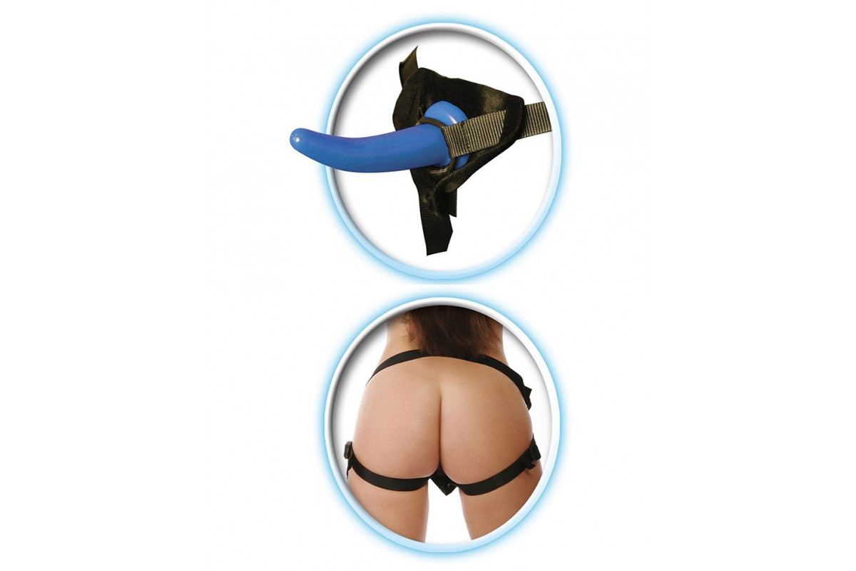 Он не напугает своим размером вашего партнера, но при этом обеспечит ему острые ощущения. Кроме того, его великолепный изгиб позволит достичь его самой сладкой точки - простаты. Прочные ремни из нейлона легко регулируются. В комплекте: нейлоновый пояс харнесс (S-M-L-XL), синяя насадка из ПВХ, тканевая маска на глаза.