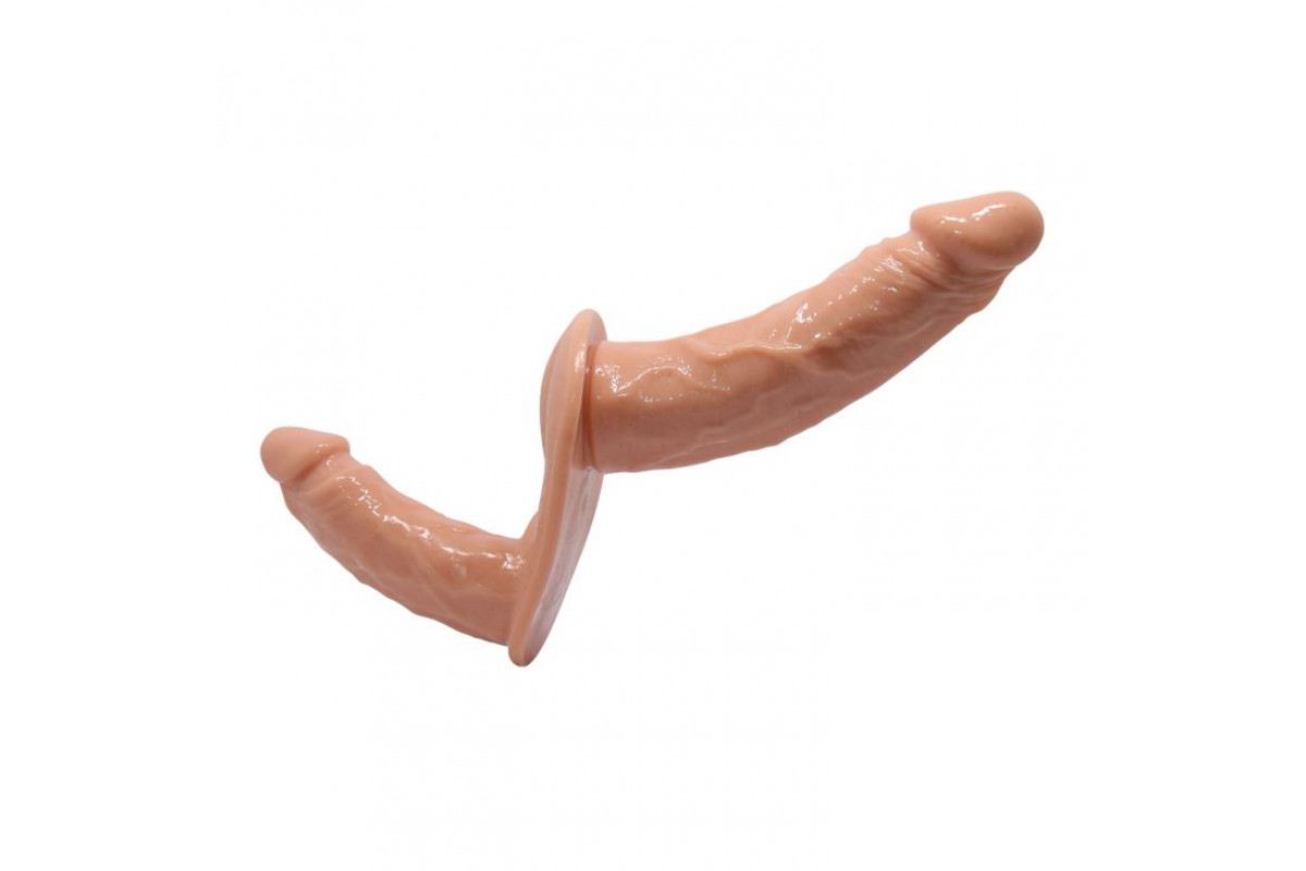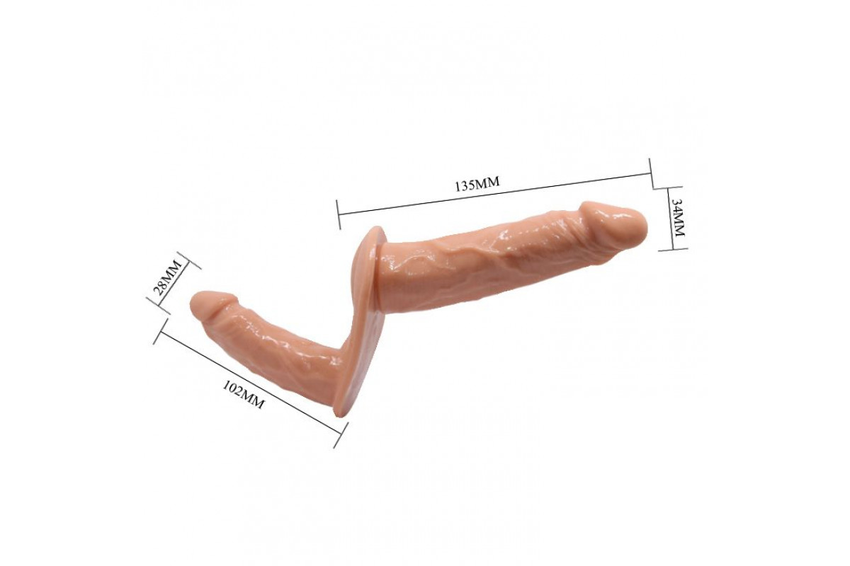 Этот страпон идеально подходит для различных форматов интимных игр, предоставляя возможность экспериментировать и открывать новые стороны своей сексуальности. Внешний отросток отлично подходит для стимуляции внешних зон, а внутренний — для глубокого проникновения, что делает его универсальным аксессуаром для интимных развлечений.
