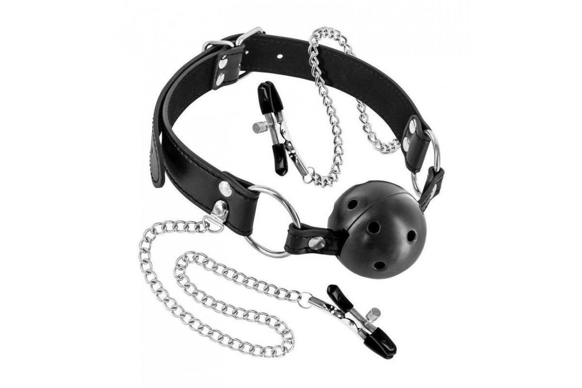 Жесткий шар-кляп с зажимами для сосков – интенсивное удовольствие и новые ощущения
