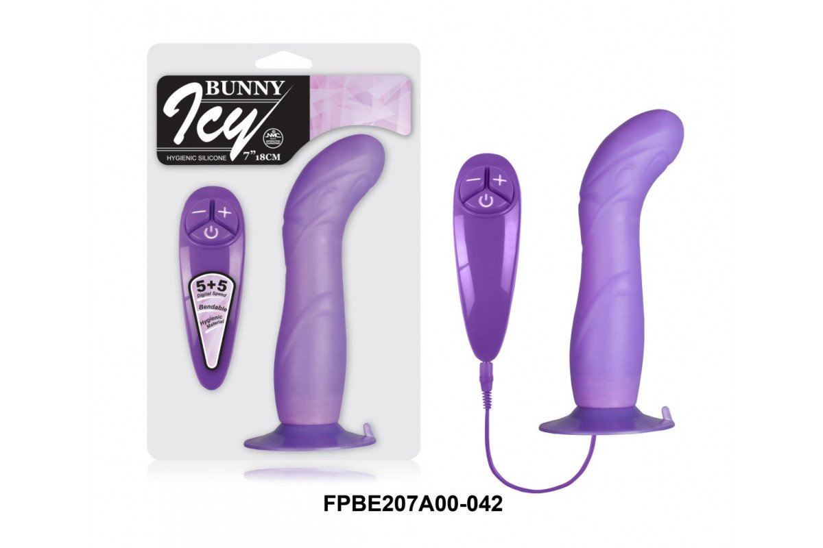 Гибкий фиолетовый вибратор на присоске - 18 см.