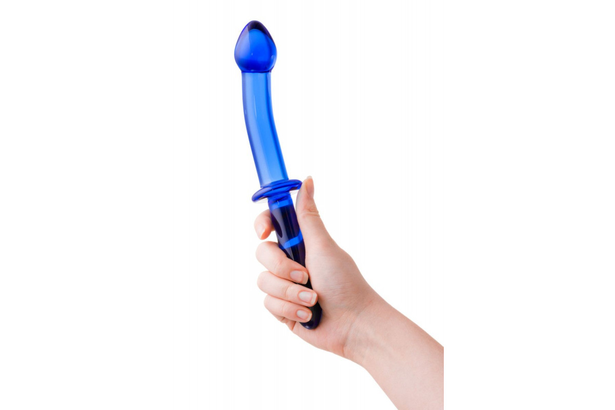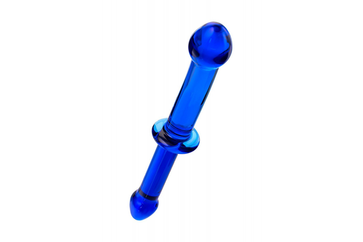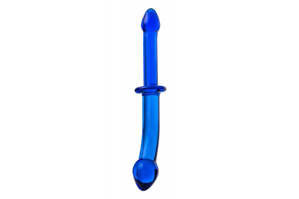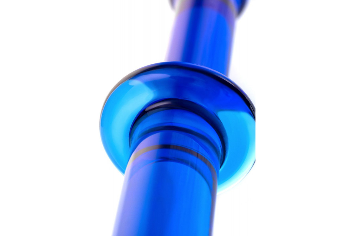 Анальный стимулятор из стекла небесно синего цвета. Популярная модель стеклянных игрушек - двойной фаллос с ограничительным основанием по середине. Одна половинка - небольшой фаллос с заостренной головкой, другая сторона-фаллос большего размера и диаметра. Изделие удобно держать и использовать, благодаря хорошему скольжению. Минимальный диаметр - 2,5 см.