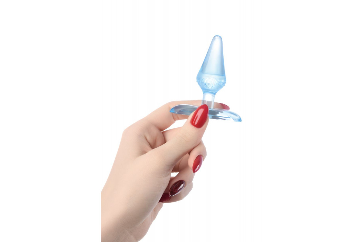 Голубая анальная втулка с ограничителем - 6,5 см.