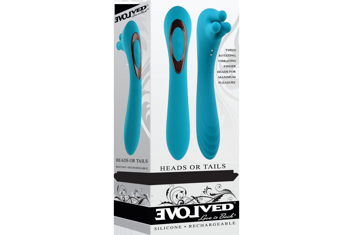 Голубой двухсторонний вибромассажер Heads or Tails - 19,3 см.