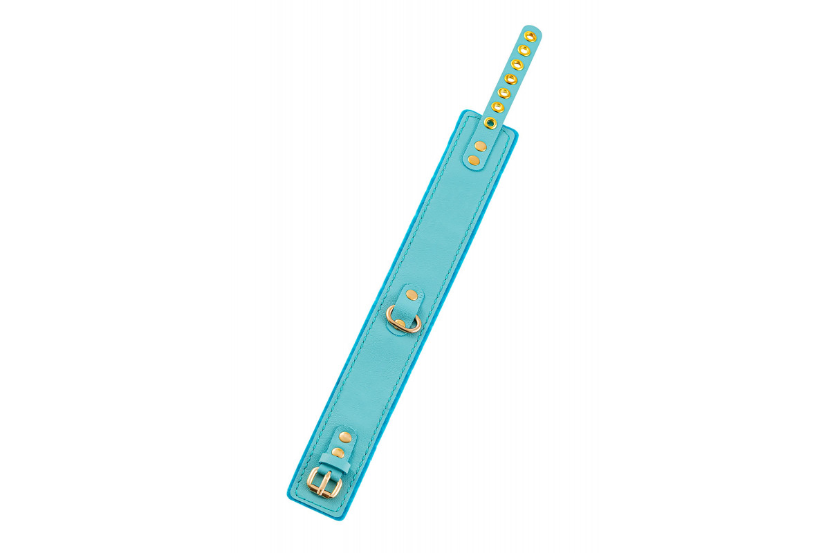 Изысканный голубой двуслойный кожаный ошейник станет ярким акцентом в вашей коллекции аксессуаров для взрослых. Этот уникальный дизайн сочетает в себе прочность натуральной кожи и мягкость фетровой подкладки, обеспечивая комфорт и стиль в любой ситуации.