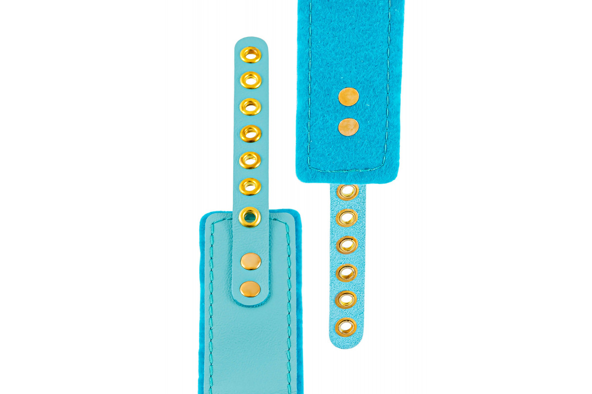 Элегантный голубой двуслойный кожаный ошейник с фетровой подкладкой