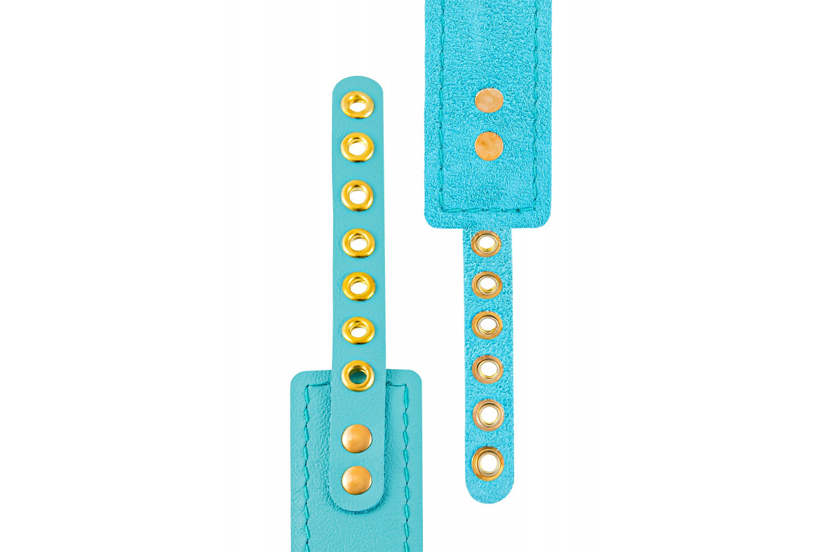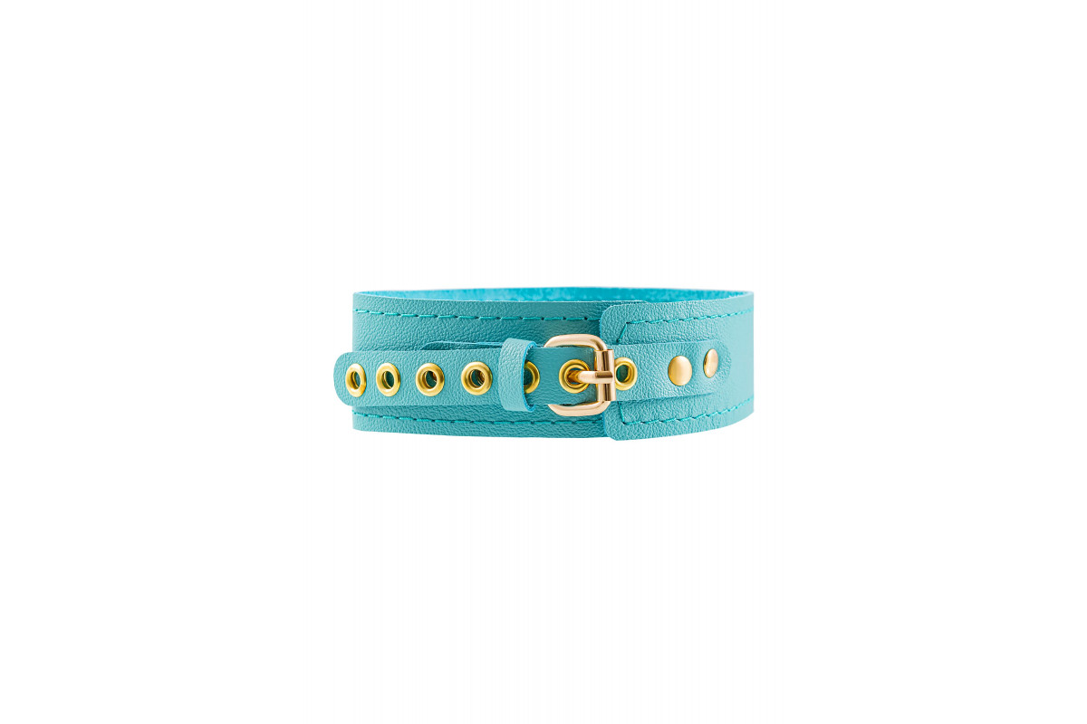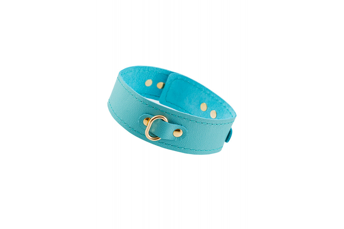 Ошейник из высококачественной кожи с ярким голубым оттенком и аккуратной прошивкой — это идеальный аксессуар для тех, кто ценит комфорт и стиль. Он отлично подчеркнет индивидуальность и добавит оригинальности вашему образу.