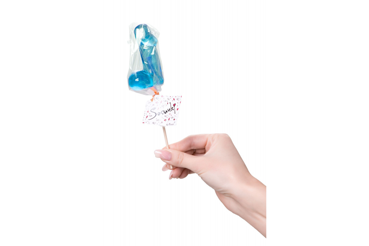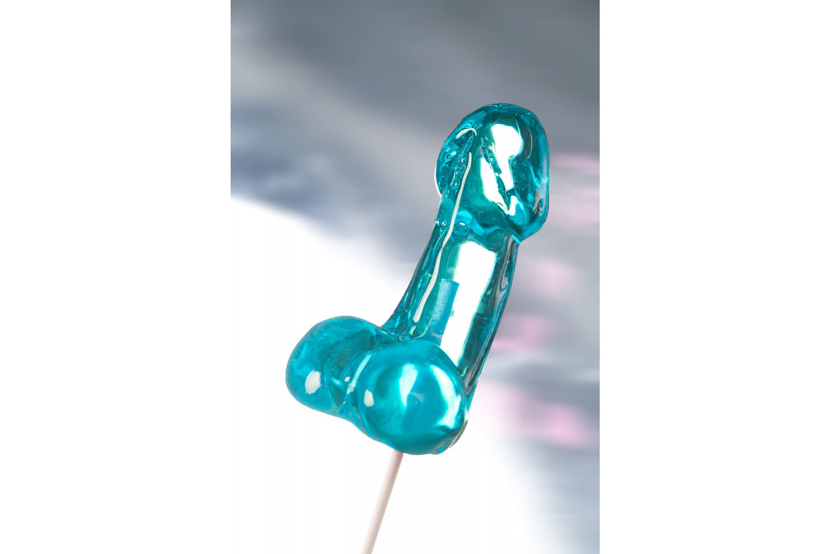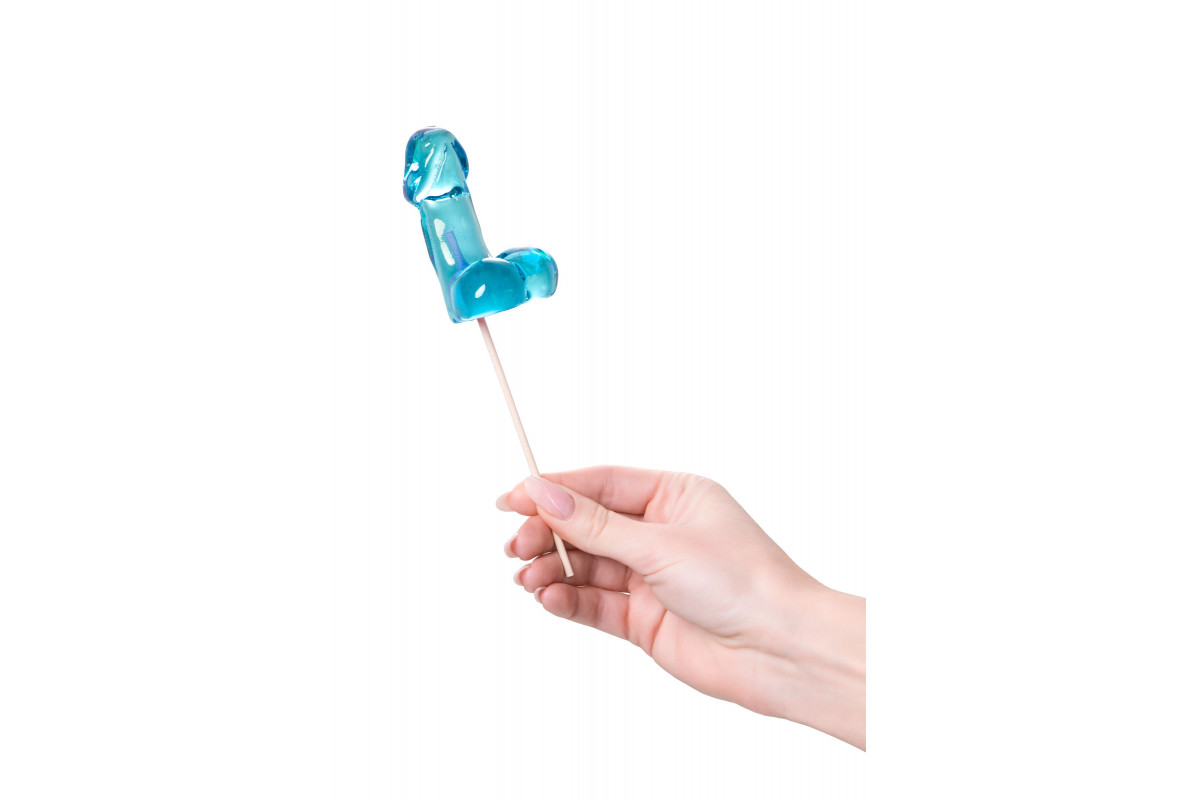 Голубой леденец в форме члена с вкусом блю кюрасао — 80 гр.