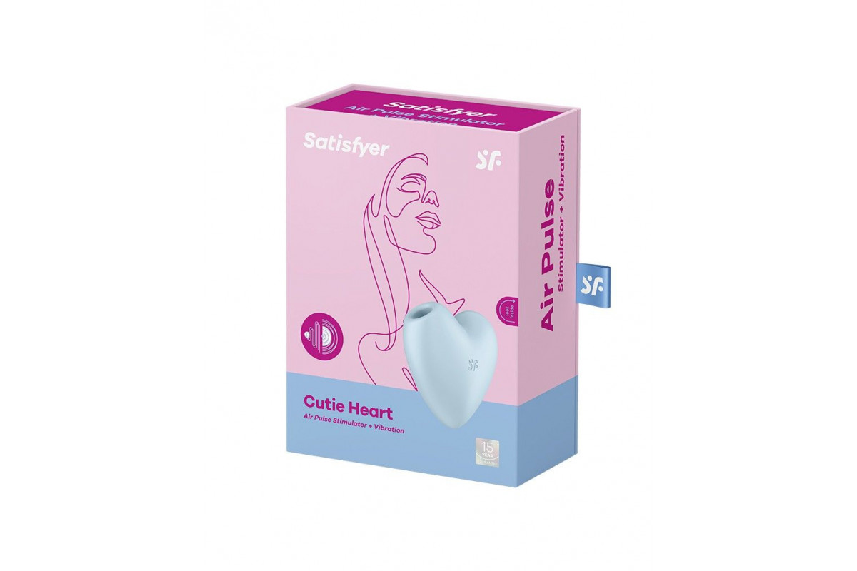 Голубой вибромассажер Cutie Heart с вакуум-волновой стимуляцией – наслаждение нового уровня
