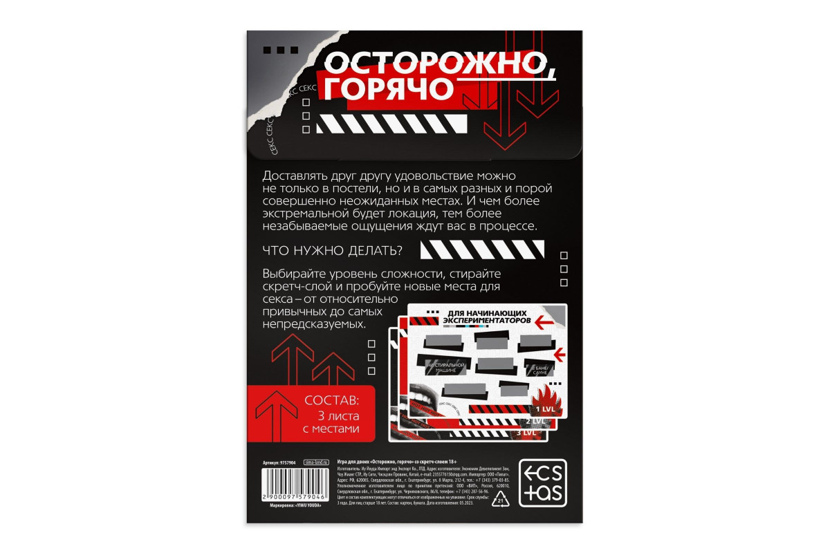 Погрузитесь в атмосферу страсти и азарта с уникальной игрой для двоих «Осторожно, горячо» со скретч-слоем. Эта игра создана специально для тех, кто ищет новые способы разнообразить интимную жизнь и сделать вечер незабываемым.