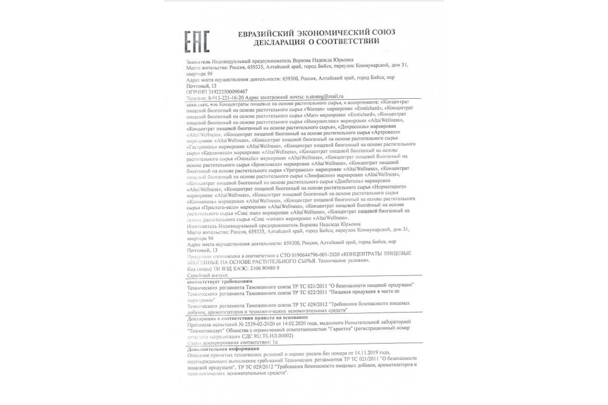 - Дополнительное функциональное назначение товара: возбуждающее средство