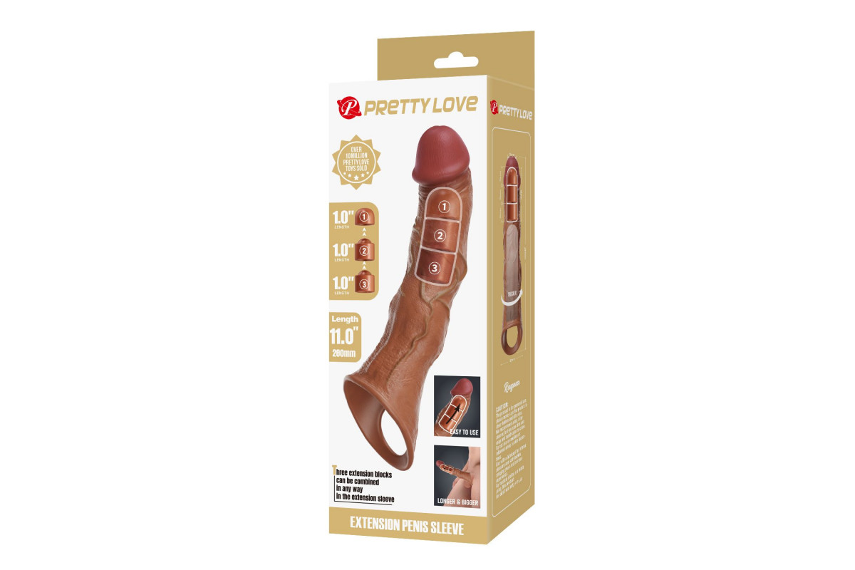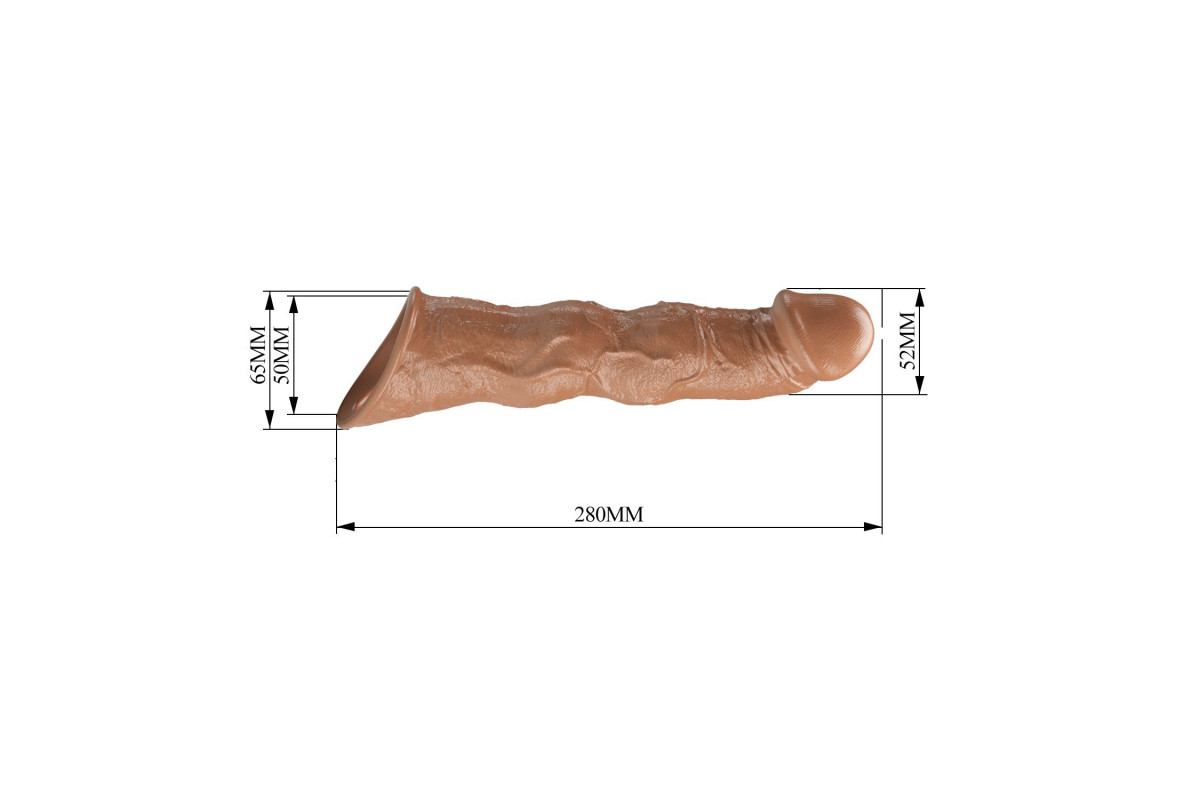 Какие точные размеры у товара Карамельный фаллоудлинитель с 3 вставками - 28 см. и кому он подойдёт?