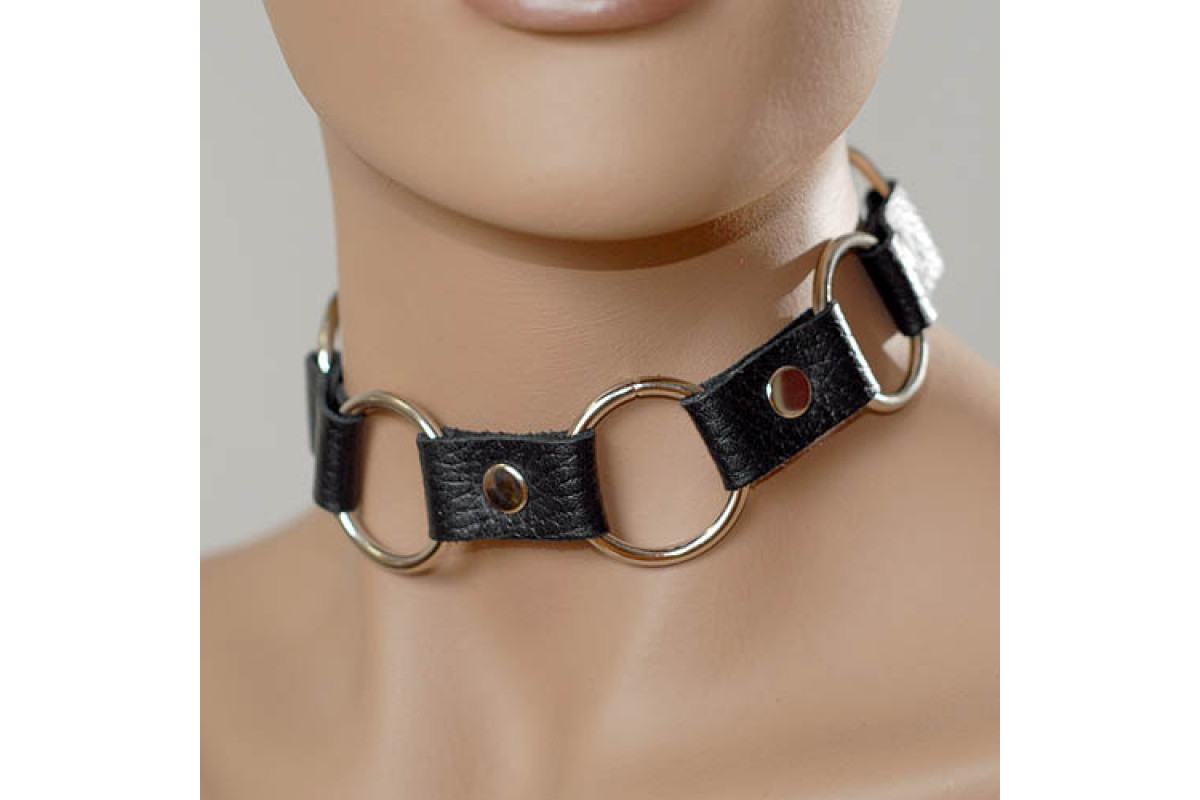 Кожаный черный ошейник с кольцами — стильное и сексуальное украшение для взрослых