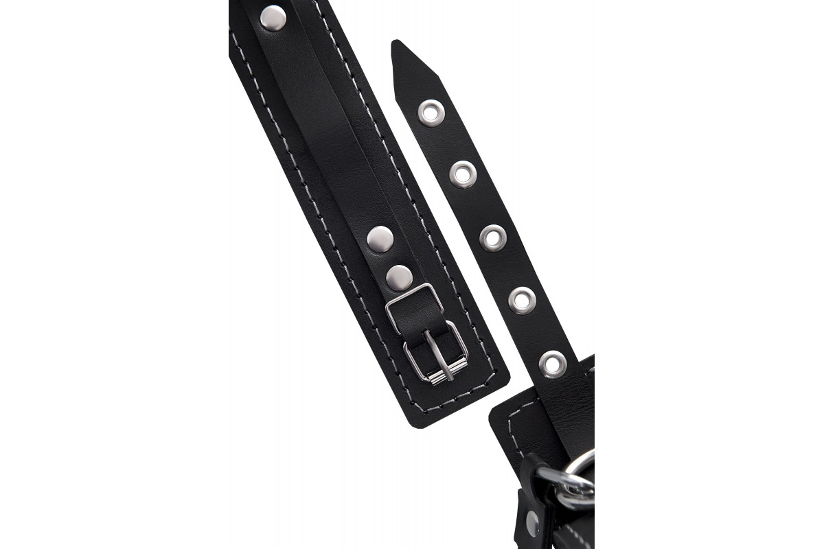 Откройте новые грани своих фантазий с нашим кожаным ошейником-чокером с поводком. Этот аксессуар идеально сочетает в себе изысканный дизайн и практичность, создавая атмосферу доверия и взаимного удовольствия в ваших интимных играх.