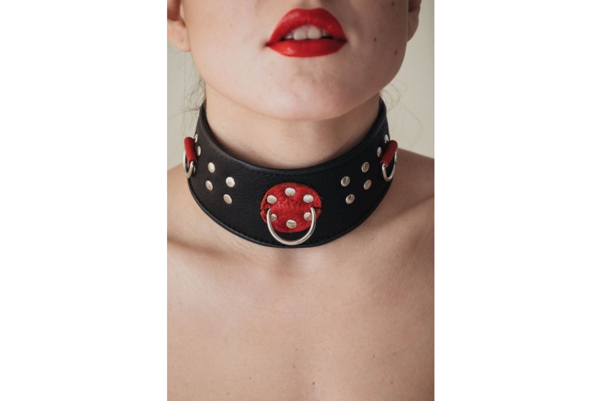 Кожаный ошейник с клепками и кольцами — выразительный аксессуар для взрослых