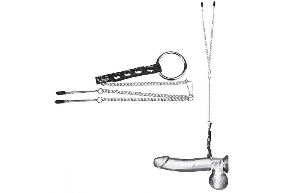 Кольцо на пенис с зажимами на соски 100% PVC STRAP WITH METAL SNAP — усиление ощущений и новые границы удовольствия
