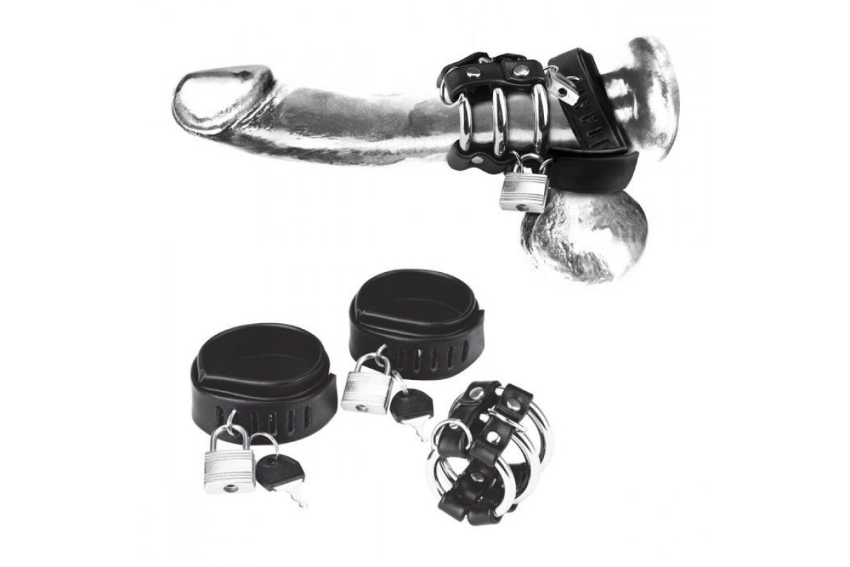 Комплект для мошонки и члена с 2 кольцами с замочками — усилите свои ощущения