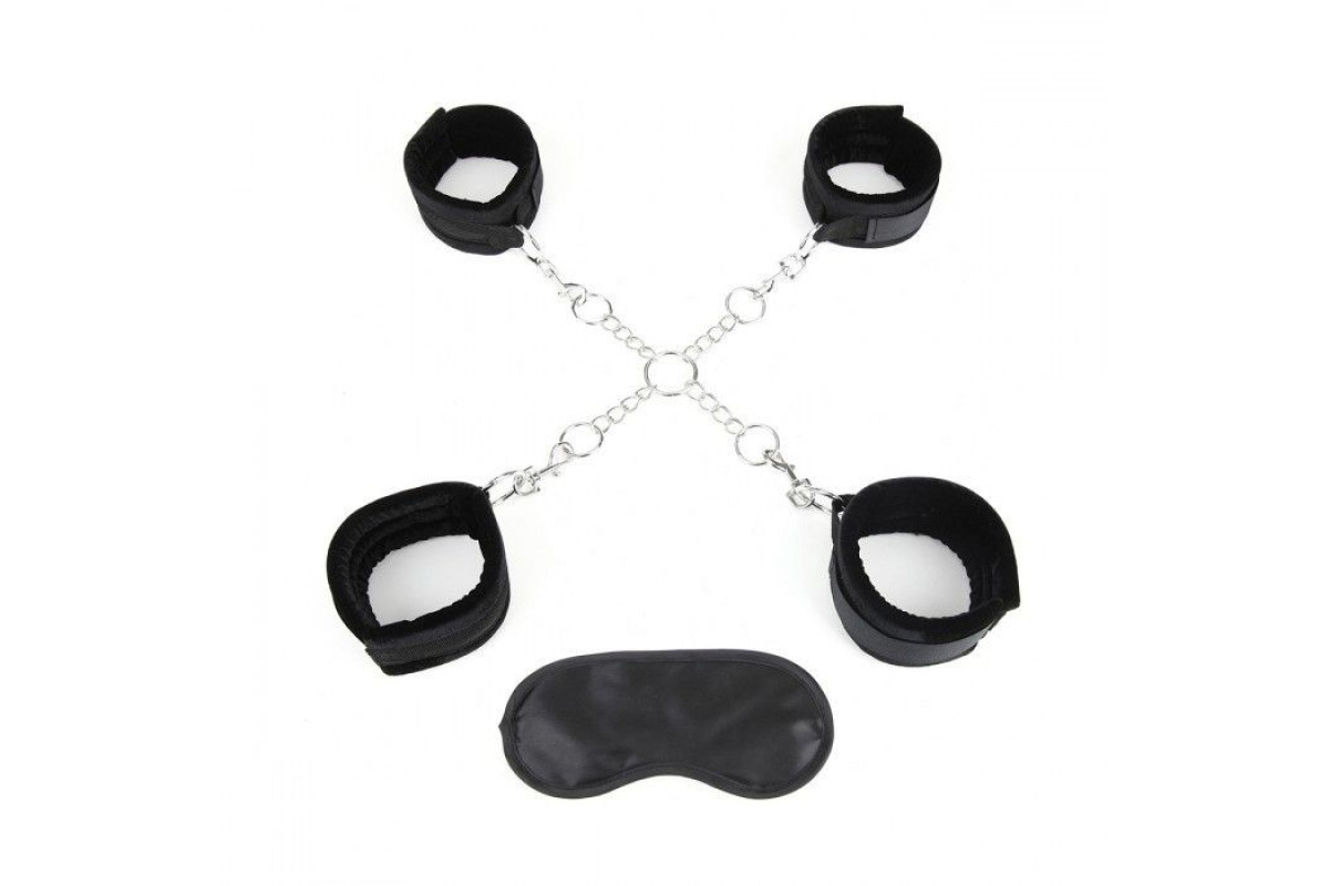 Погрузитесь в мир новых ощущений с нашим комплектом из 4 чёрных манжет и крестообразного соединителя. Этот комплект создан для тех, кто ценит комфорт, безопасность и яркие впечатления во время интимных игр. Благодаря современному дизайну и высокому качеству материалов, он станет незаменимым дополнением вашей коллекции аксессуаров для взрослых.