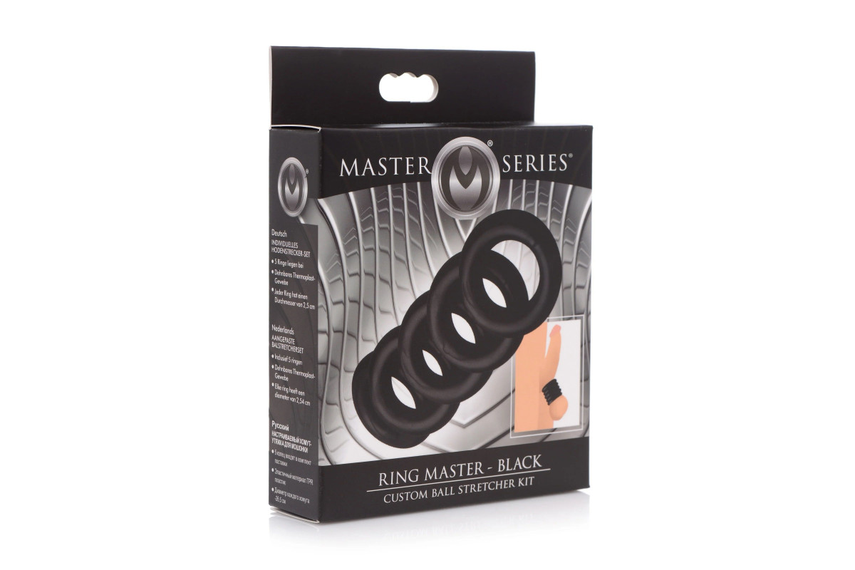 Добавьте в свою коллекцию уникальные эрекционные аксессуары и откройте новые горизонты удовольствия с Ring Master Custom Ball Stretcher Kit.
