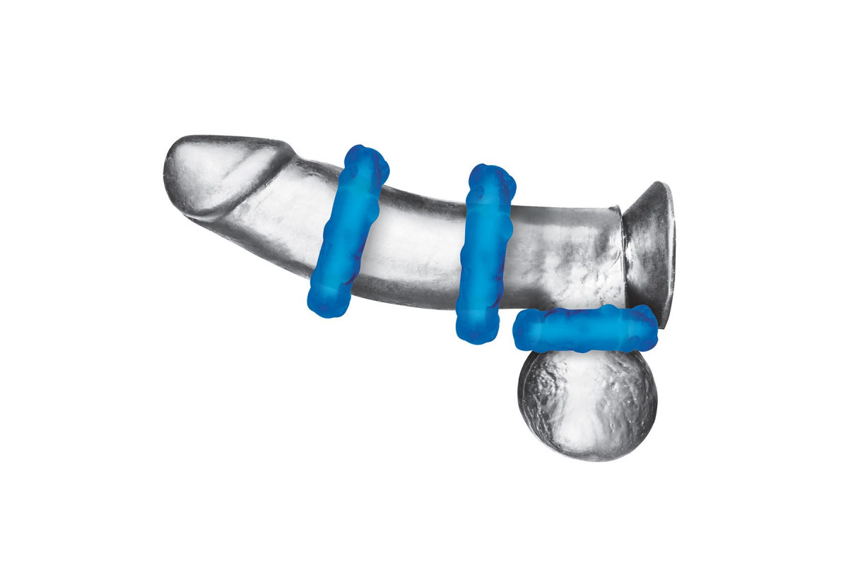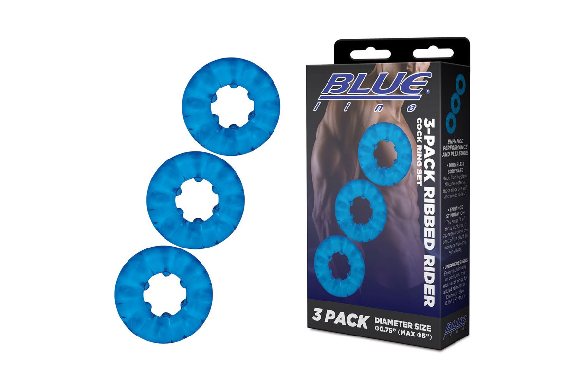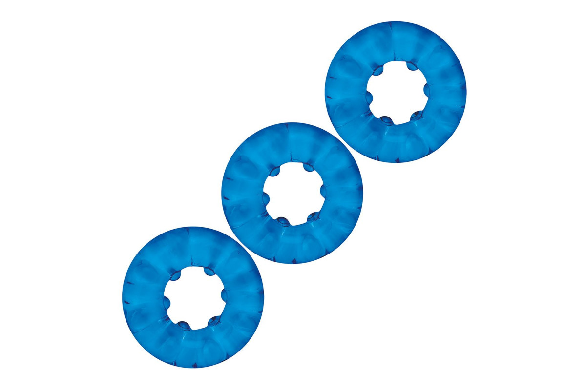 Комплект из трех голубых эрекционных колец 3-Pack Ribbed Rider Cock Ring Set