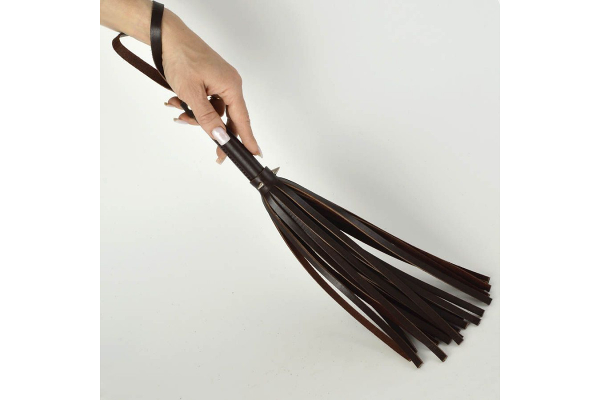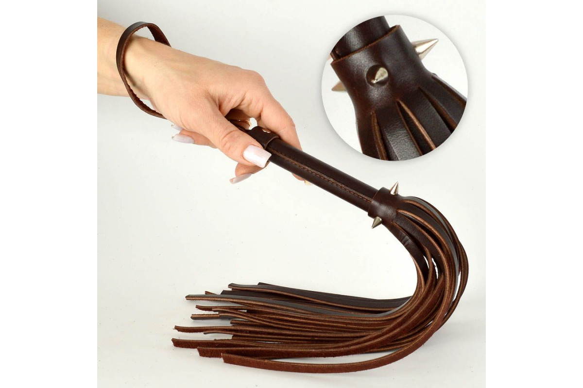 Элегантная коричневая кожаная мини-плеть с шипами — 40 см