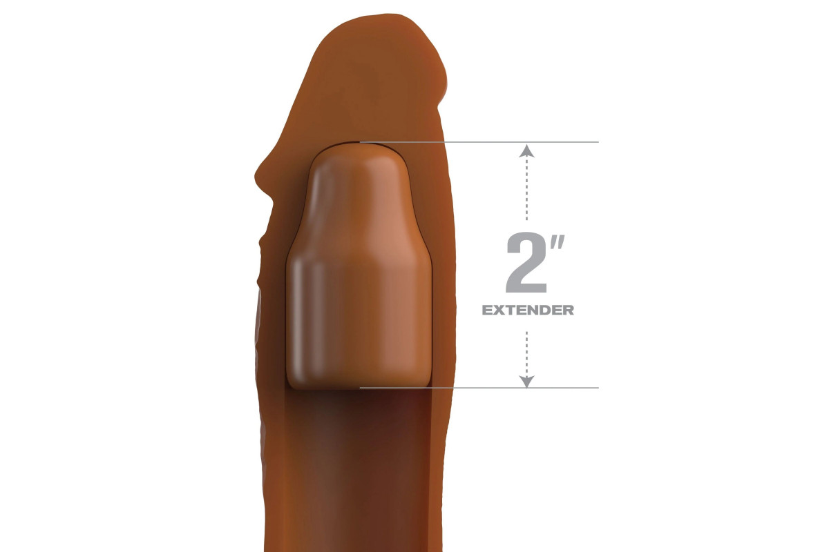Коричневая насадка на член 2 Silicone X-tension - 20,3 см.