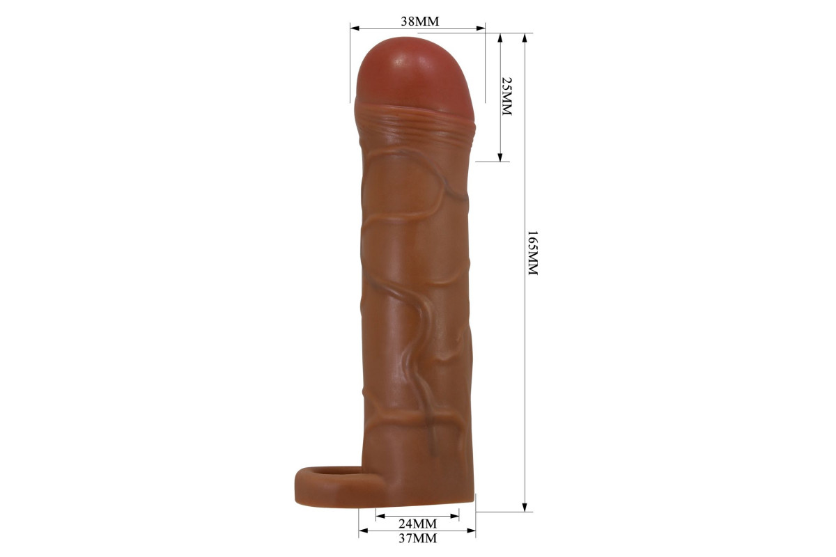 Этот удлинитель сочетает в себе функциональность и стиль. Его коричневый цвет и гладкая поверхность делают использование максимально приятным и эстетичным. Наденьте насадку и откройте для себя новые ощущения, делая каждую интимную встречу незабываемой.