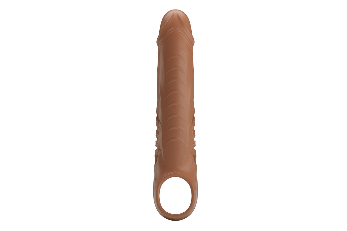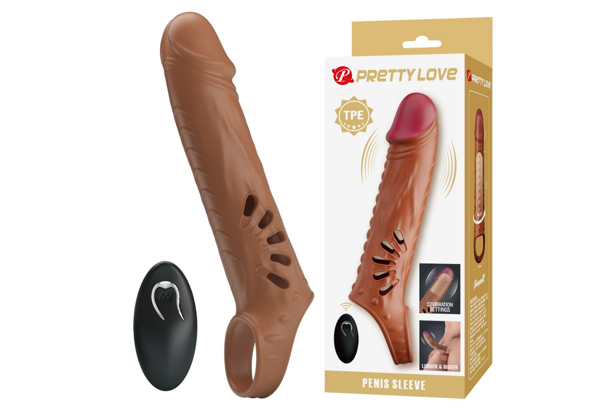 Коричневая вибронасадка с подхватом мошонки и пультом ДУ — новые ощущения для взрослых