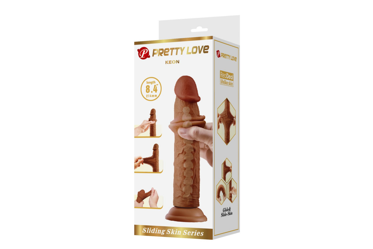 Коричневый фаллоимитатор с подвижной кожей Keon – 21,4 см