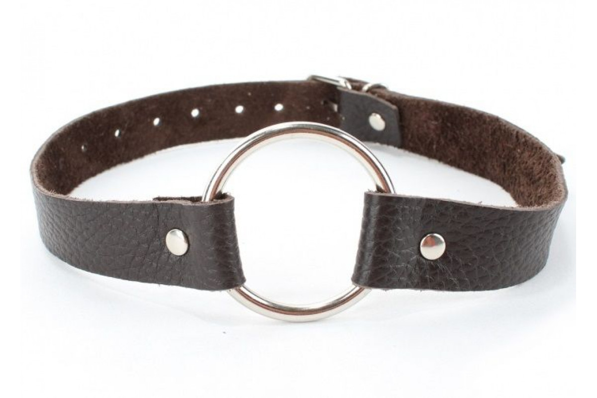 Коричневый кожаный кляп с металлическим кольцом — добавьте остроты в ваши интимные игры