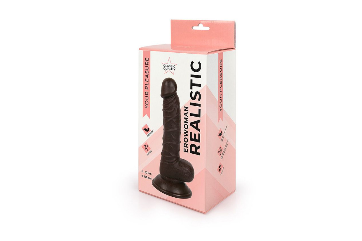Коричневый реалистичный фаллоимитатор на присоске - 19,5 см.