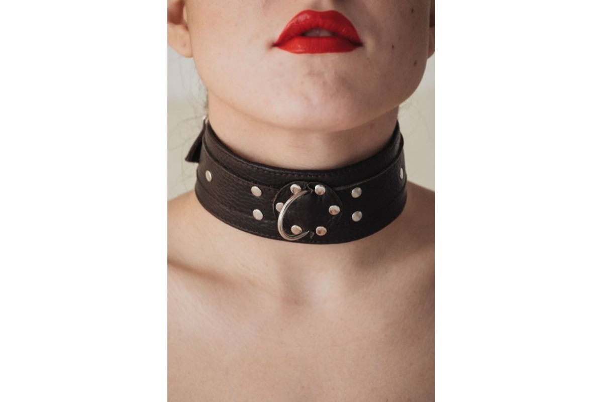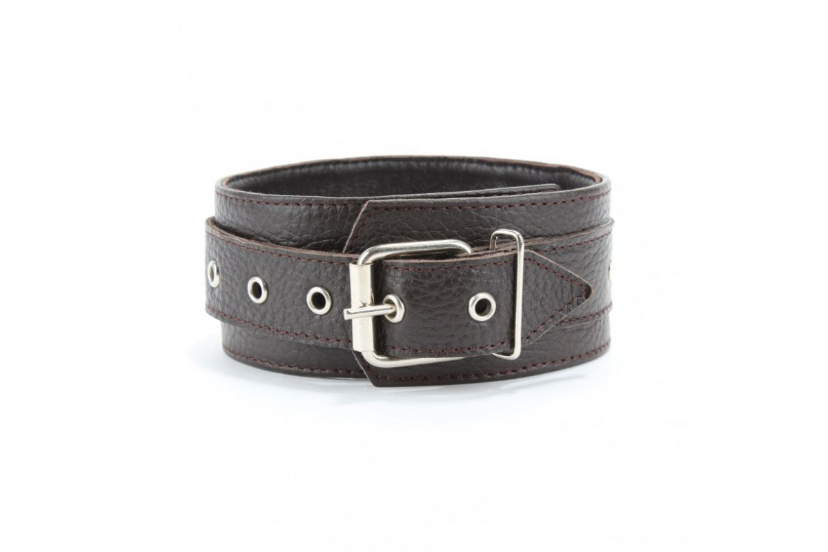 Коричневый широкий ошейник из мягкой кожи — стильный аксессуар для взрослых