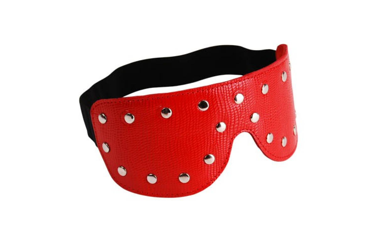 Красная кожаная маска на глаза с клёпками и велюровой подкладкой