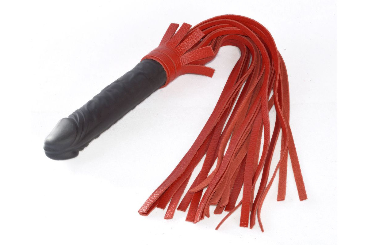 Красная плеть Ракета А с рукоятью из латекса и хвостами из кожи - 50 см.
