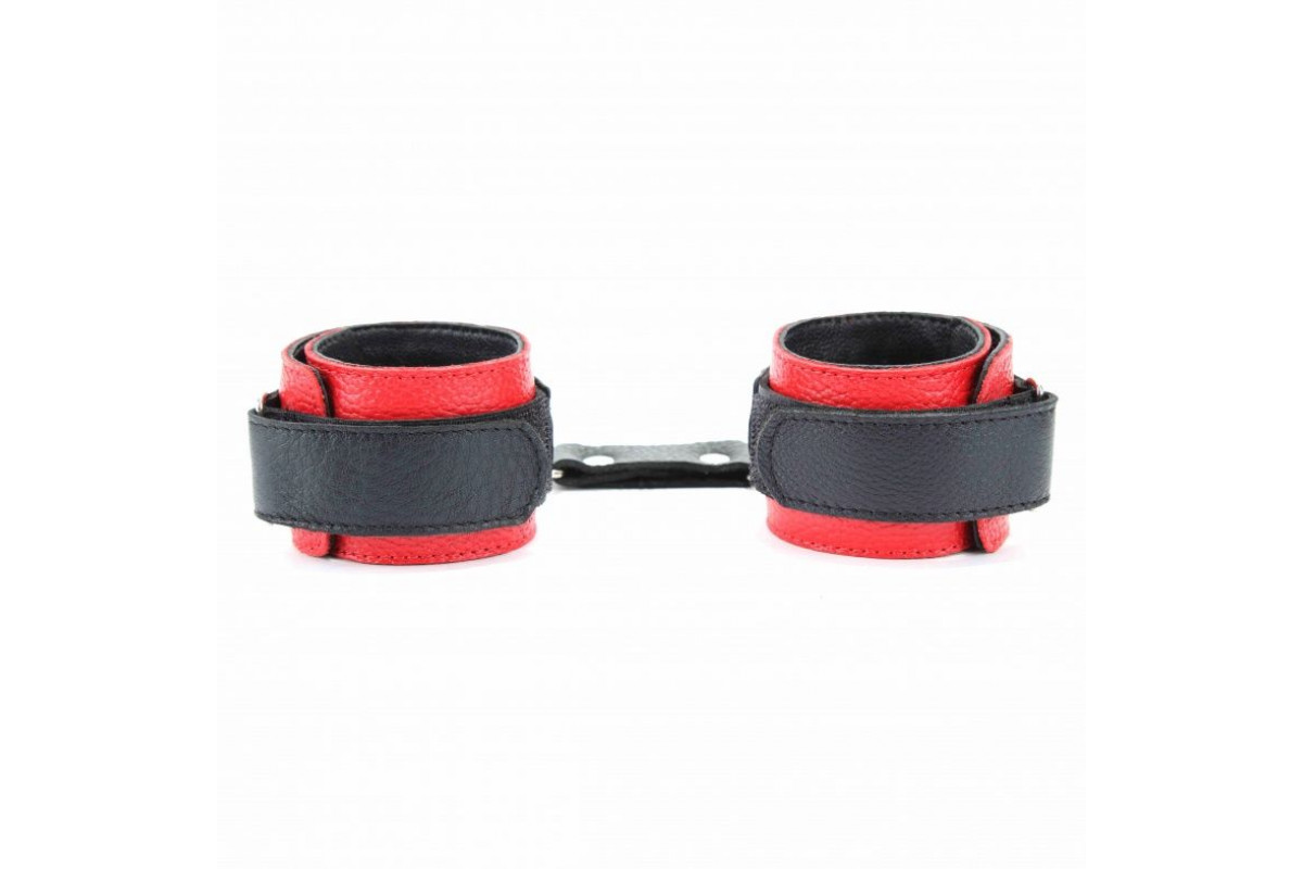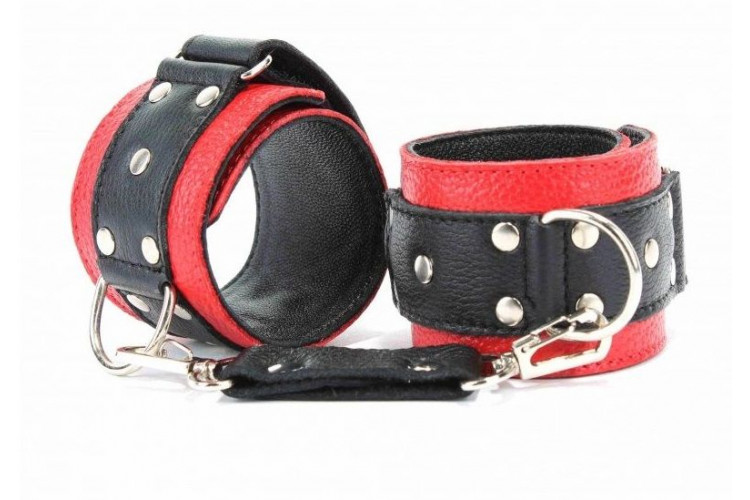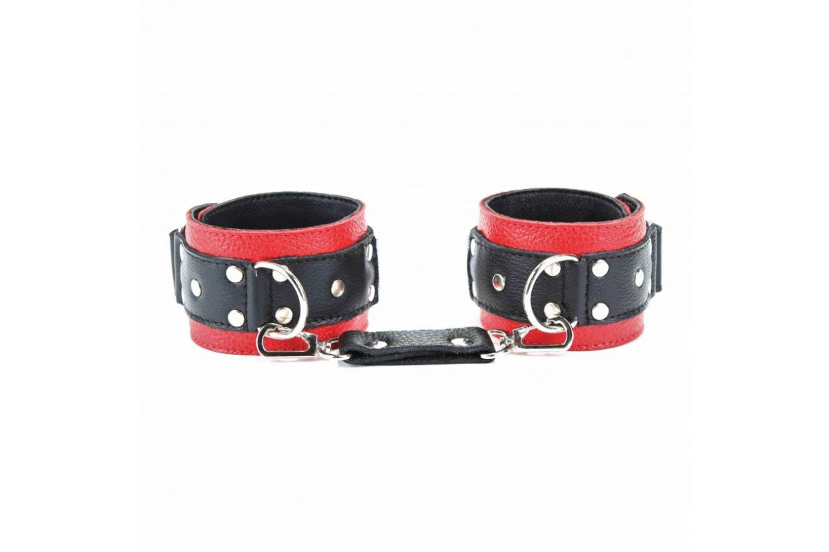 Красно-чёрные кожаные наручники — стильное и элегантное решение для взрослых