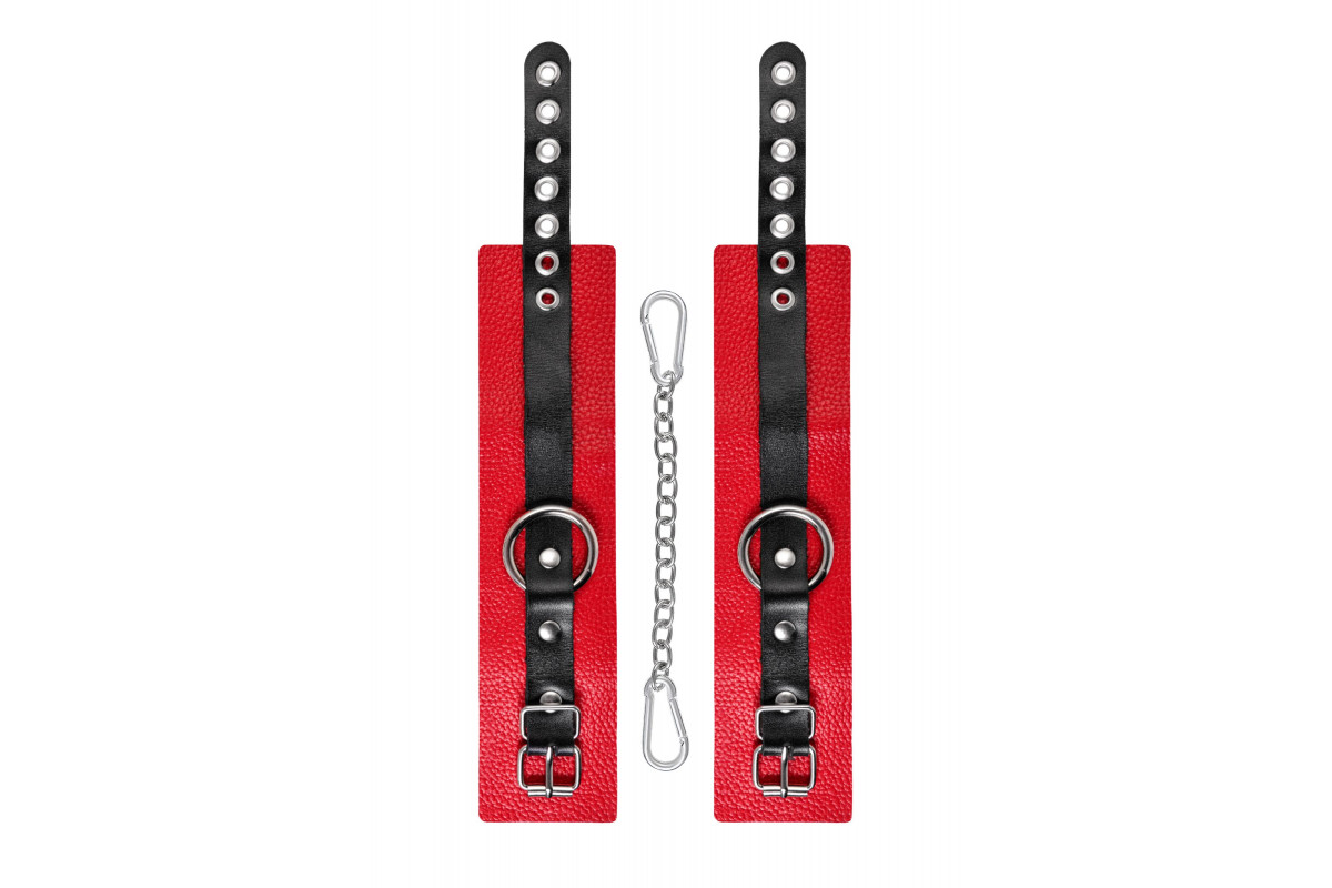 Красно-черные мягкие оковы с одним ремешком и люверсами — добавьте страсти и азарта в ваши интимные игры