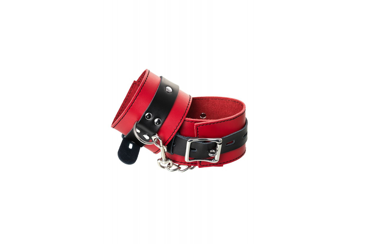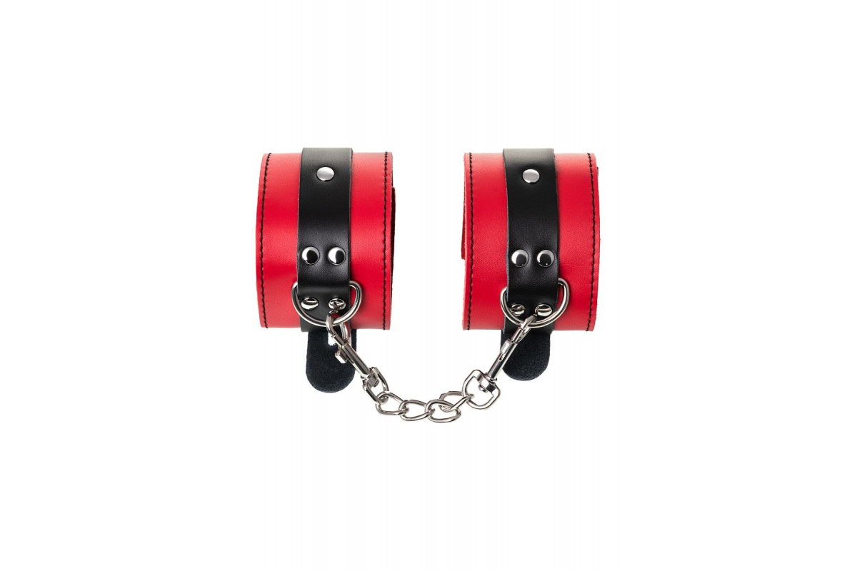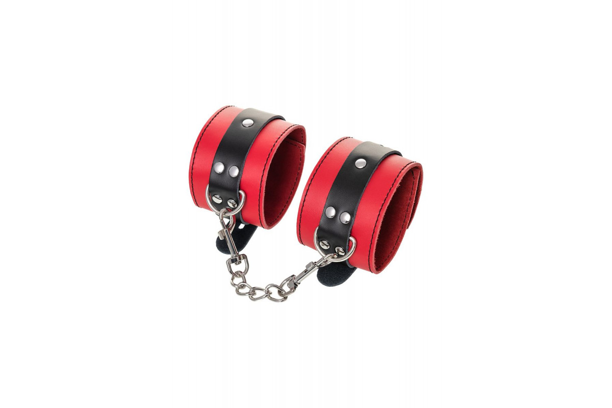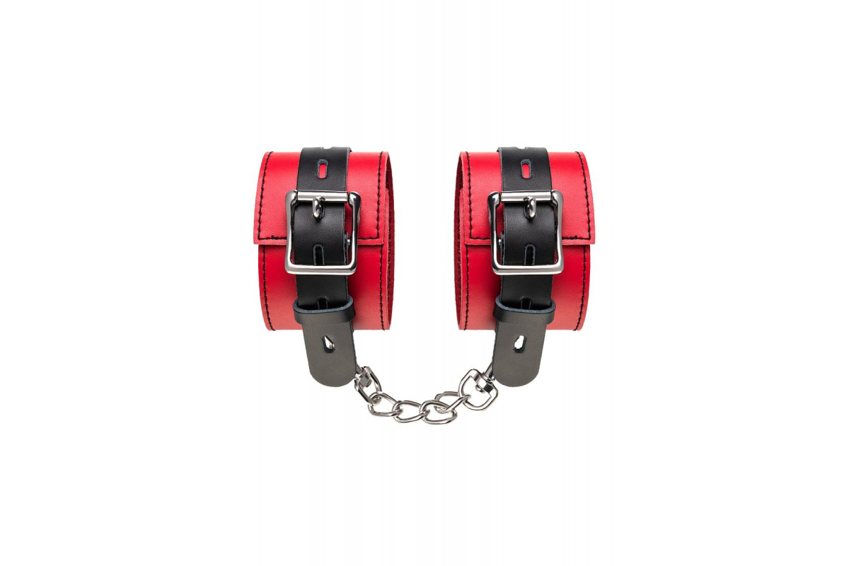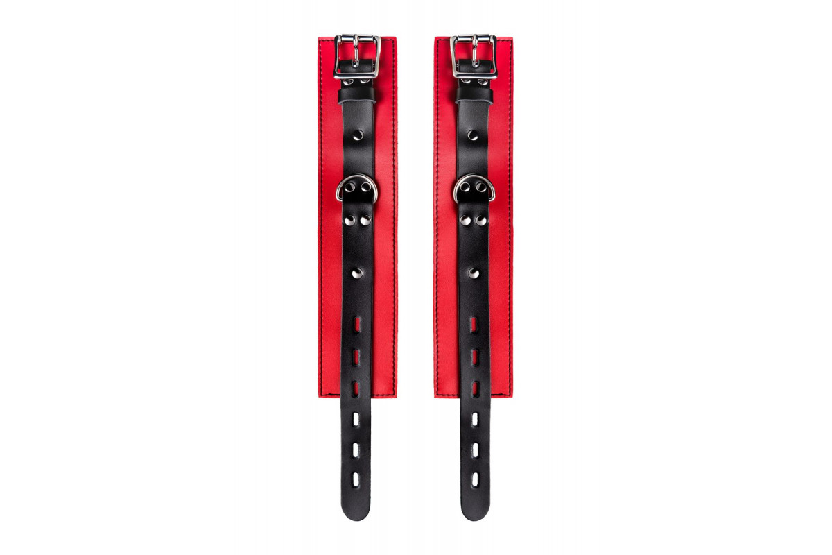 Красно-черные оковы на ноги из кожи — добавьте страсти и элегантности в ваши интимные игры