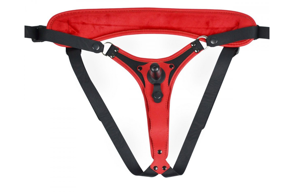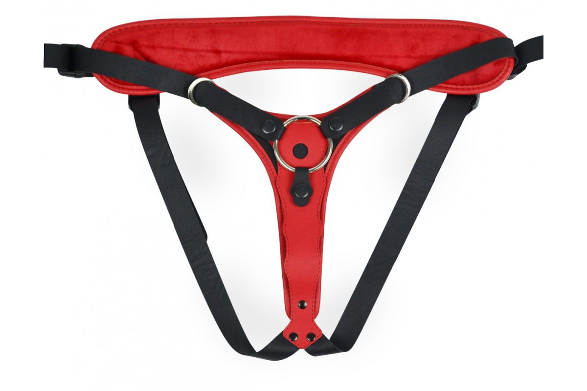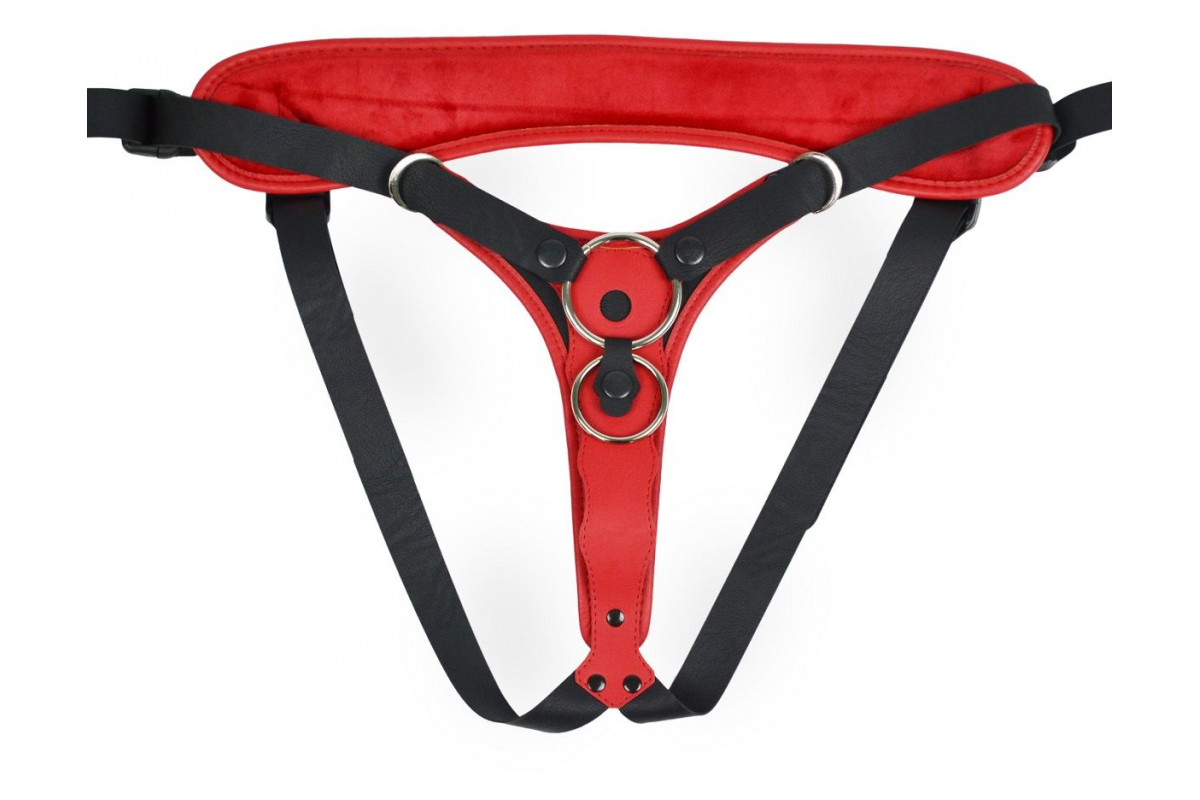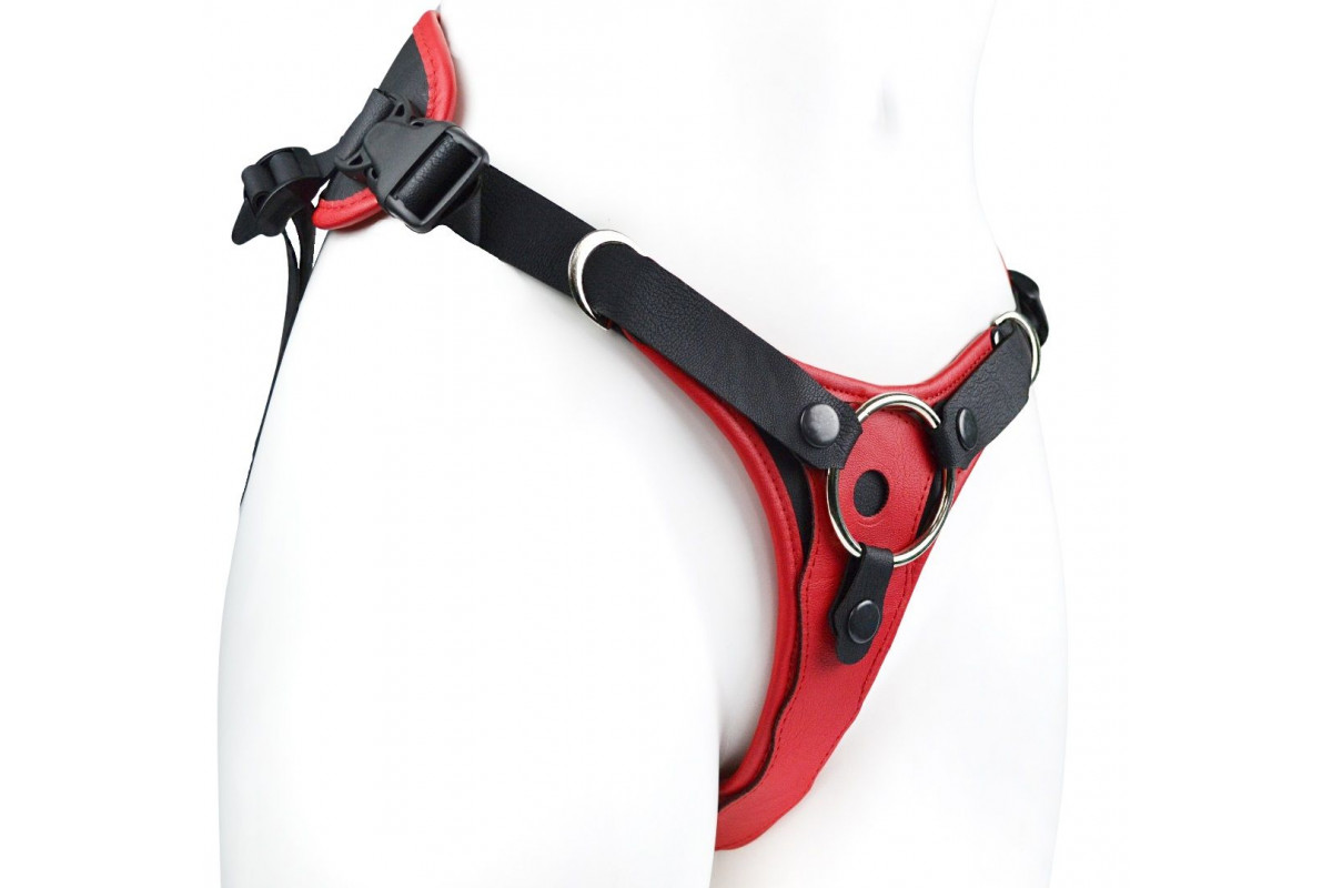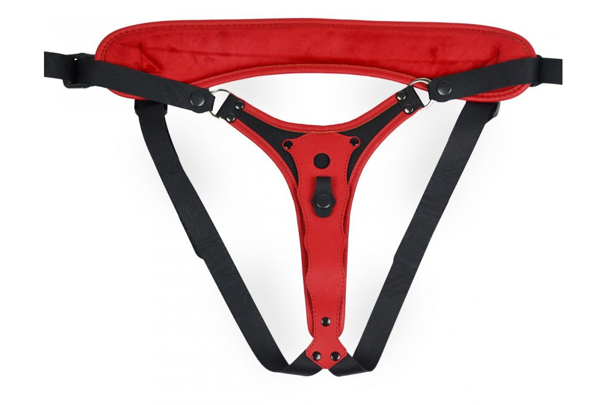 Красно-черный женский пояс с 2 способами крепления насадок — добавьте острых ощущений в ваши интимные моменты
