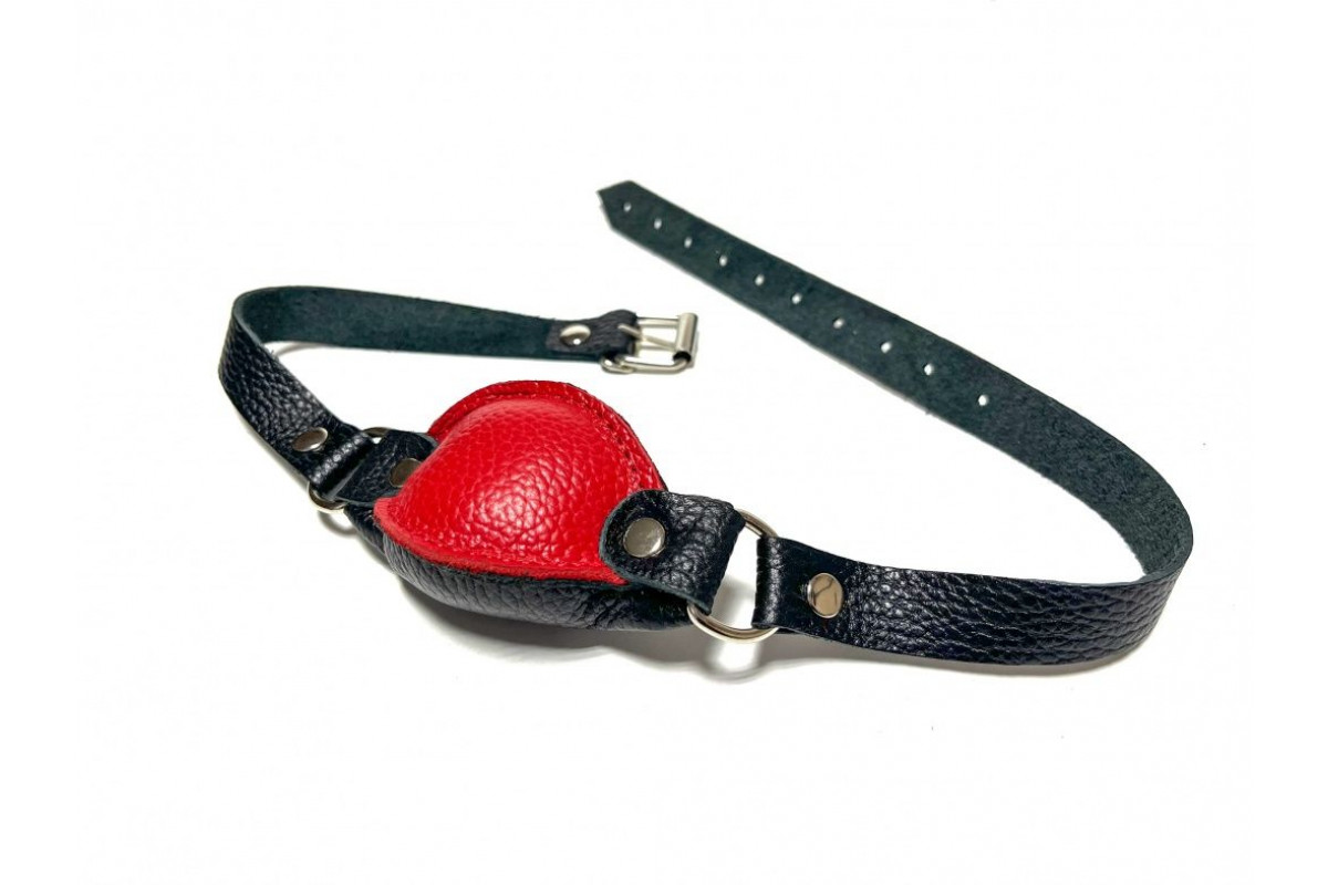 Красно-черный кожаный кляп на ремешках с пряжкой — стильное и безопасное удовольствие