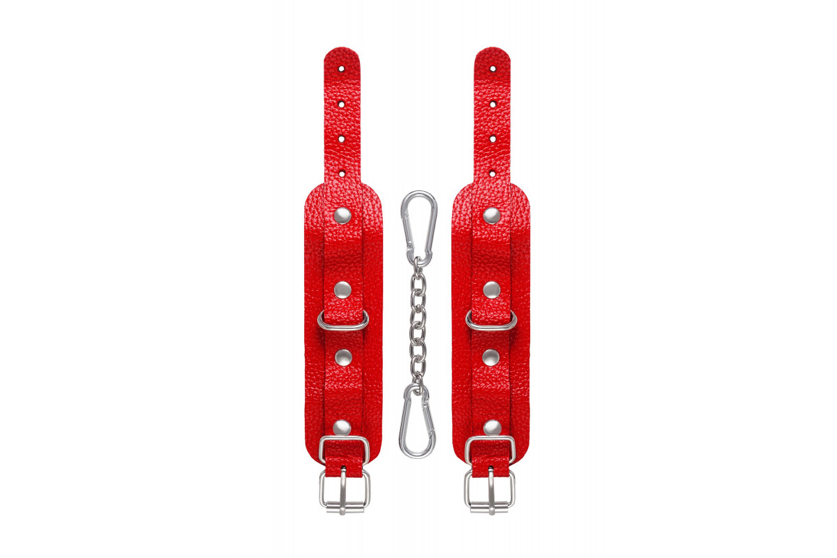 Красные кожаные наручники-браслеты со скруглёнными углами — стильное и эротичное украшение для взрослых
