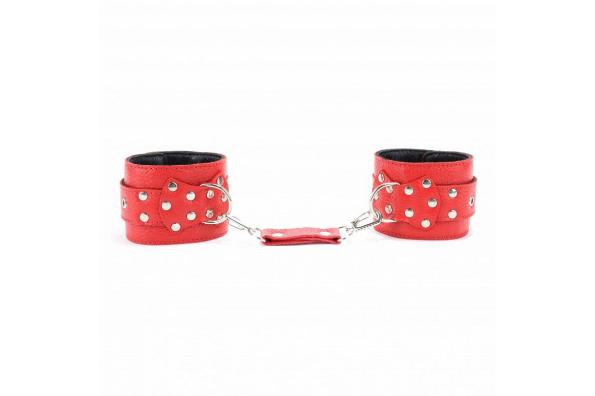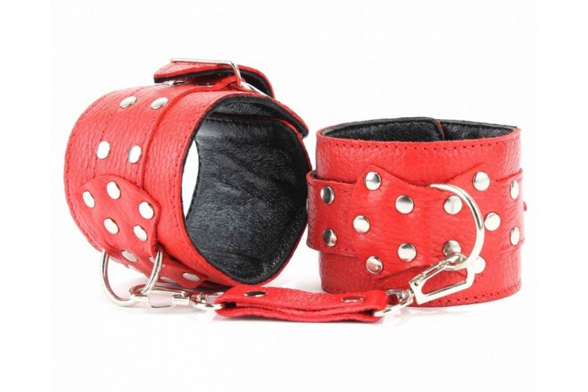 Красные кожаные оковы с клепками — добавьте страсти и яркости в ваши интимные игры