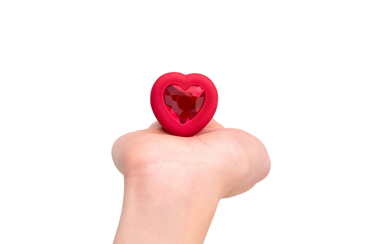Красный анальный плаг с кристаллом-сердцем Vibrating Heart Shape Jewel Plug M-L