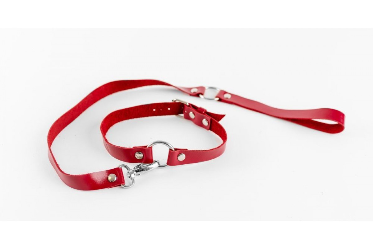 Красный чокер из натуральной кожи с поводком — стильное и эротичное украшение для взрослых