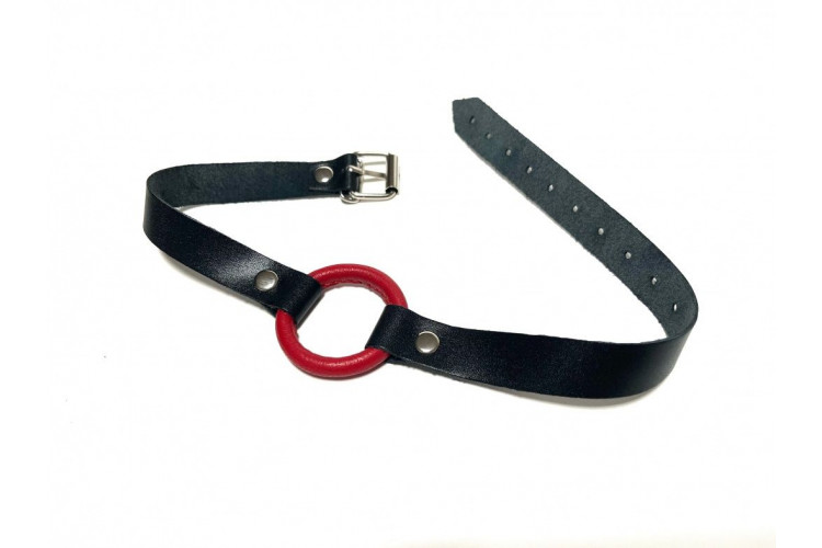 Строгий и надежный кляп, выполненный из натуральной кожи черного цвета. В основании использовано сварное металлическое кольцо, обтянутое нежной овечьей кожей красного цвета. Обхват удобно регулируется с помощью металлической пряжки. Такой кляп станет отличным элементом БДСМ игры, функциональным и комфортным в использовании. Диаметр кольца - 4,5 см.