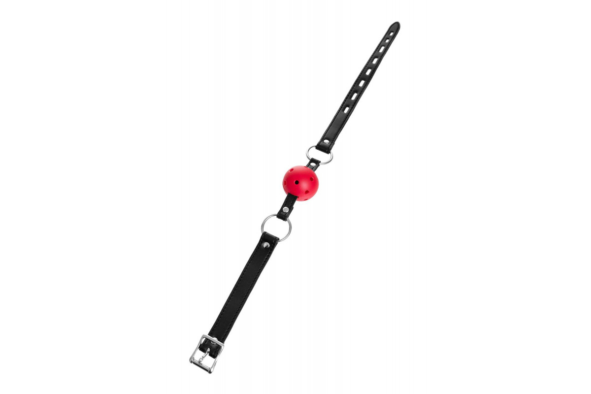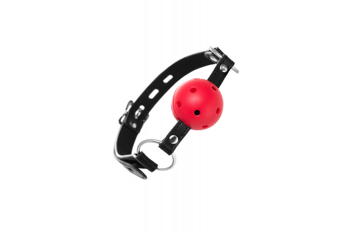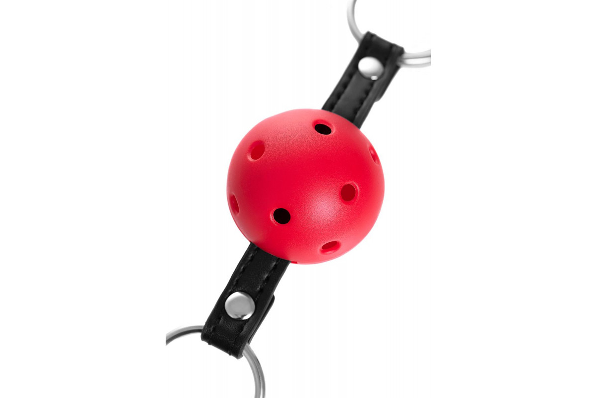 Подарите себе и партнеру незабываемые моменты страсти и доверия — красный кляп-шар на черных ремешках станет вашим надежным спутником в мире эротики и удовольствия.