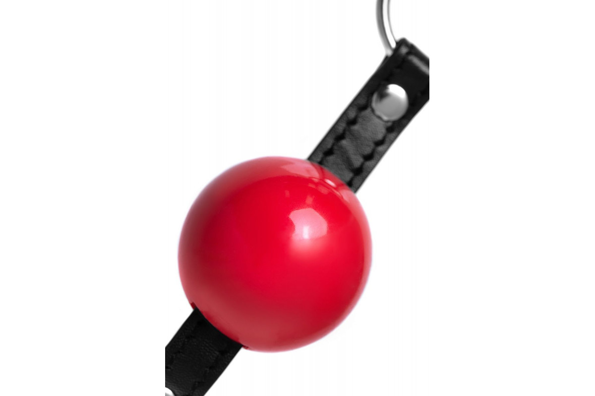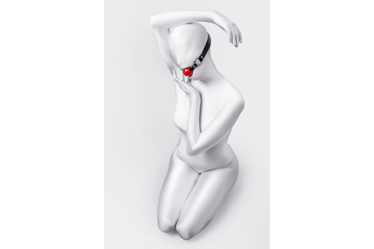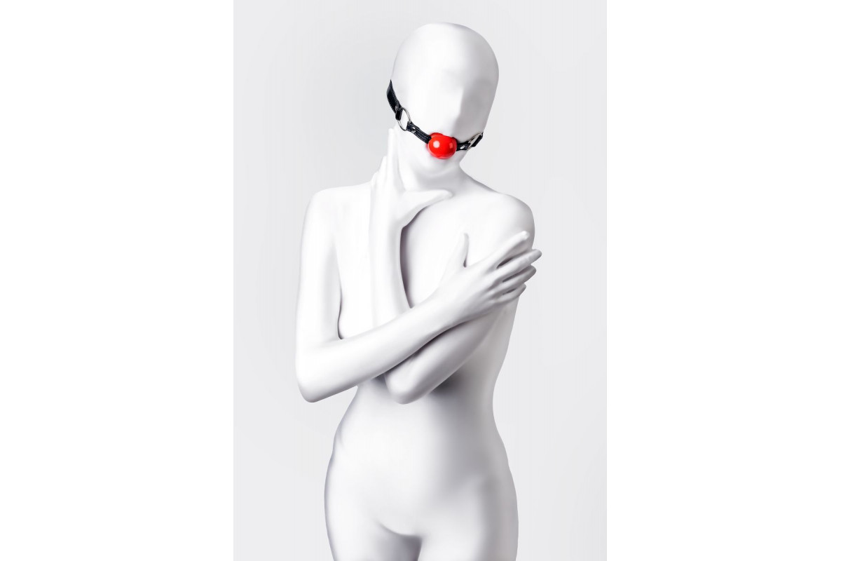 Красный кляп-шар на черных ремешках Anonymo — роскошное средство для новых ощущений