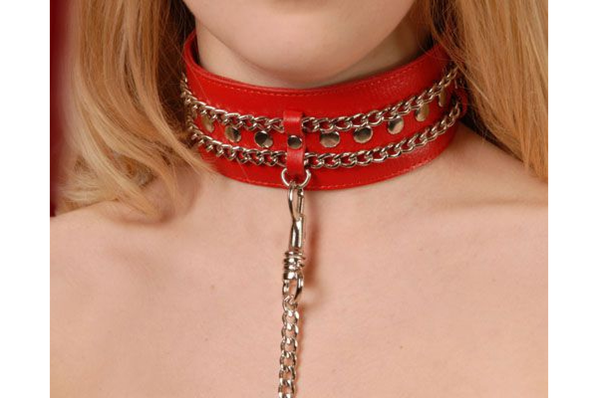 Красный ошейник с цепочками — стильное и эротичное украшение для взрослых