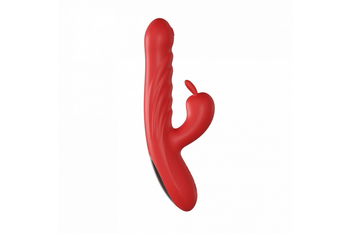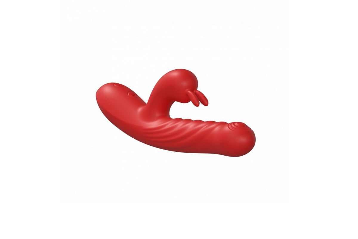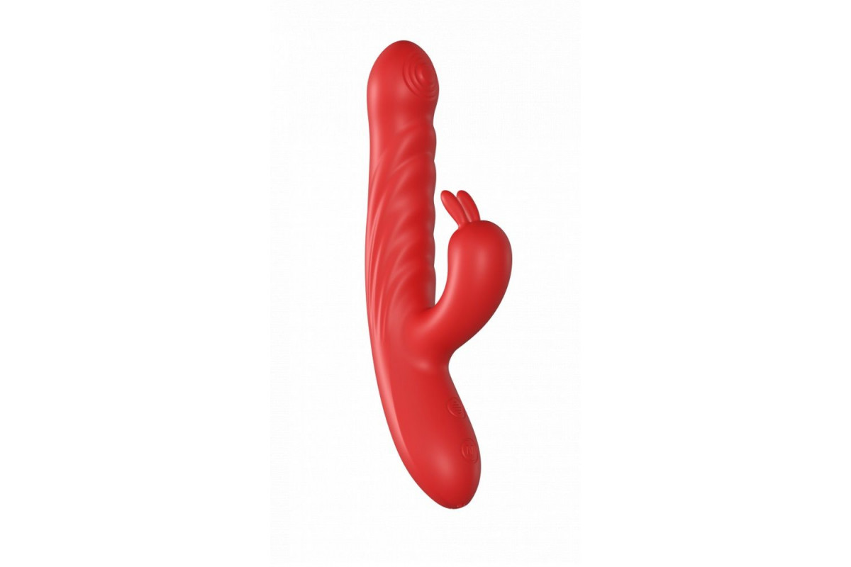 Красный силиконовый вибратор-кролик с фрикциями — 22 см