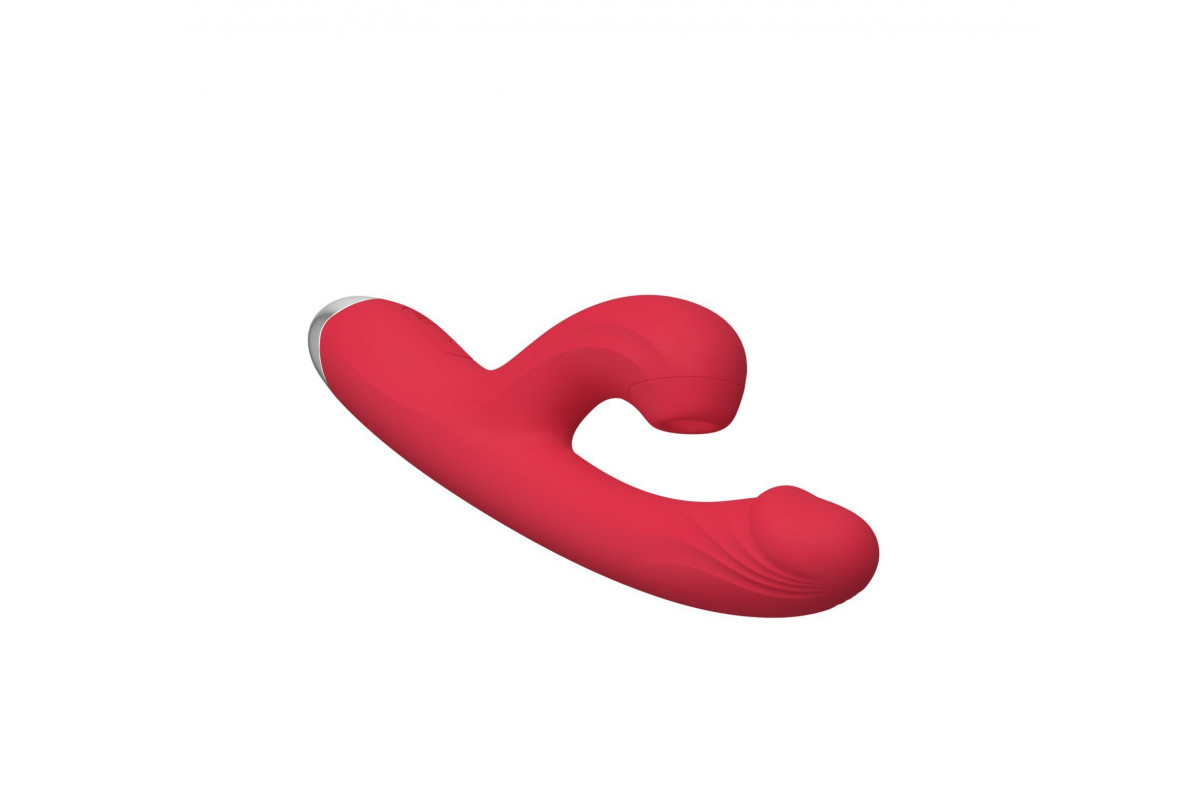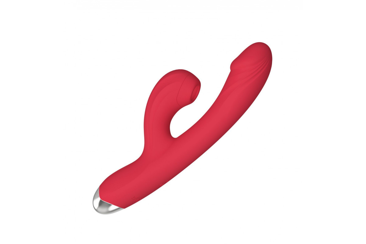 Красный силиконовый вибратор-кролик с вакуумным клиторальным отростком – наслаждение и комфорт