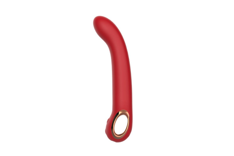Красный силиконовый вибратор с загнутым кончиком - 22,1 см.